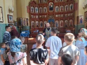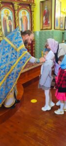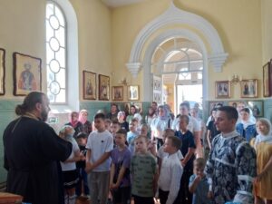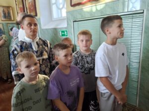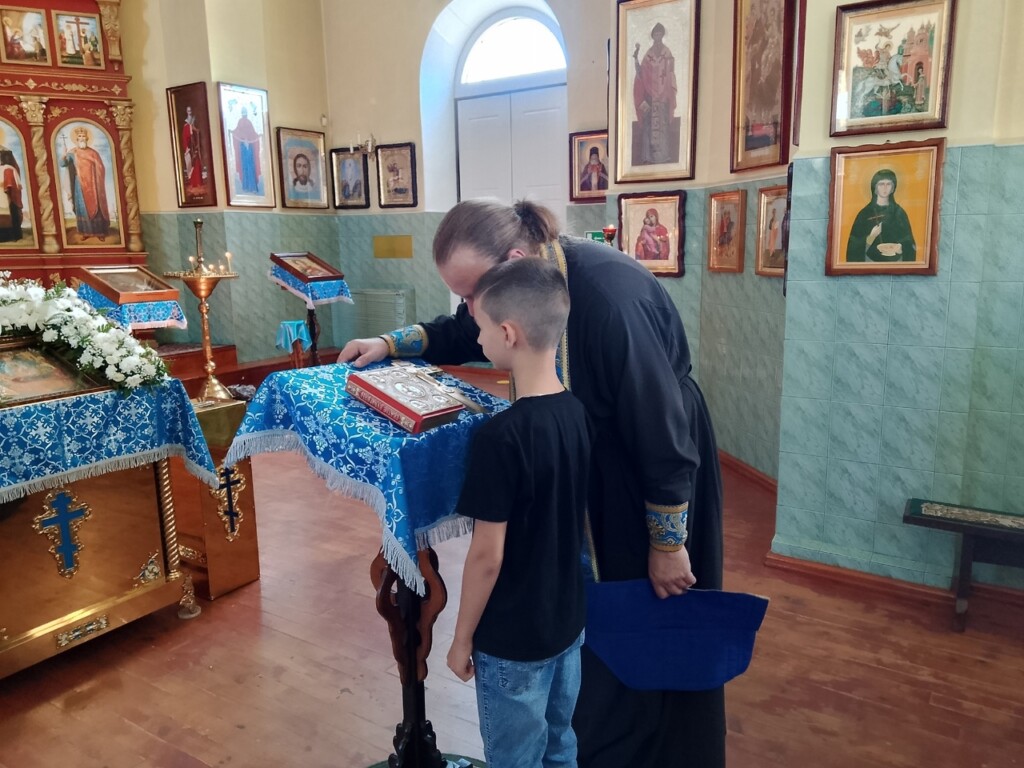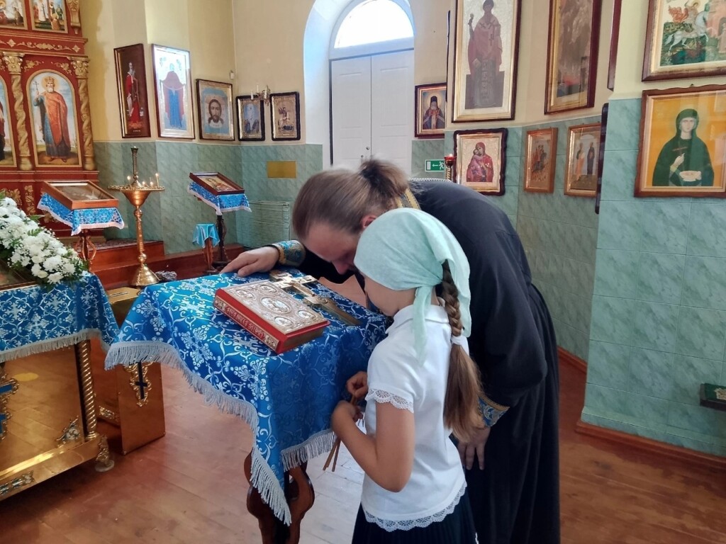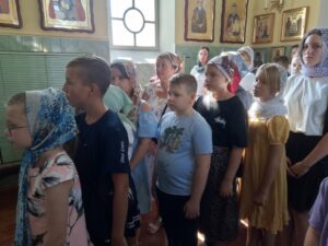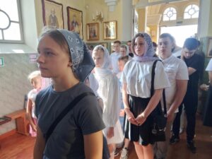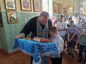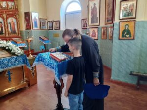По окончании богослужений, воспитанники воскресной школы Прихода Никольского храма села Бокино, а также учащиеся учебных заведений поселка Строитель, в преддверии начала нового учебного года, приняли участие в общей подготовке ко Святому Причастию. Таинство Покаяния ( общая исповедь ).