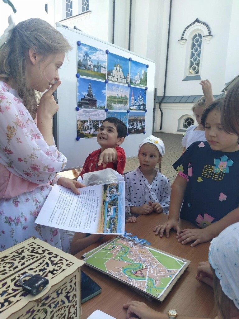 Для ребят младших возрастных групп, проведена станционная игра «Путешествие по Золотому кольцу России», в рамках праздника воскресной школы «День радостных встреч!»