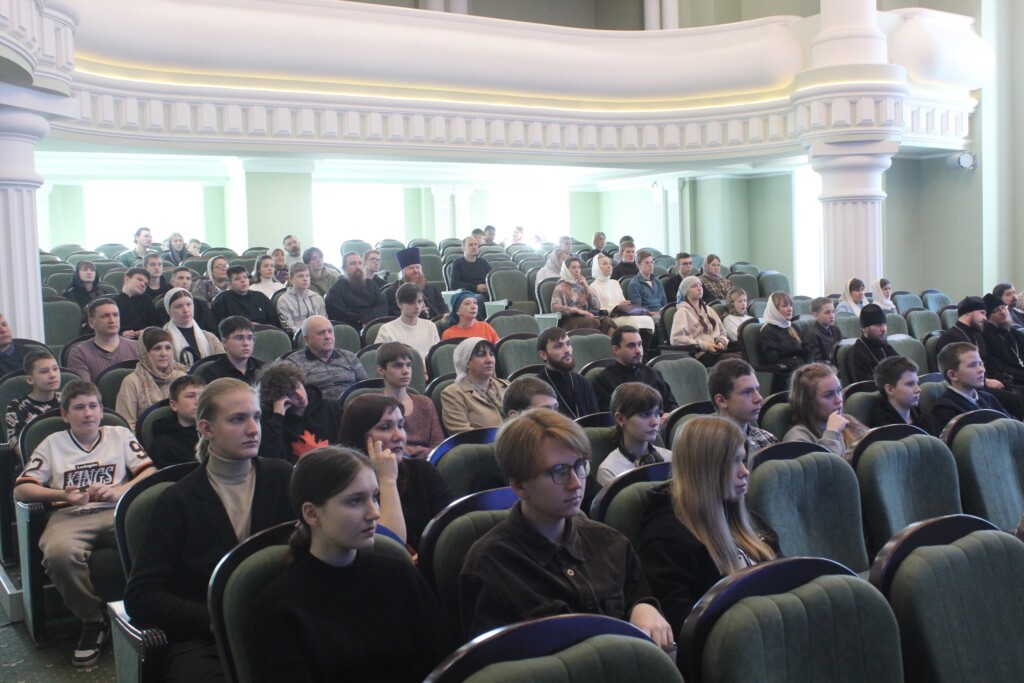 В актовом зале собрались будущие абитуриенты, воспитанники воскресных школ, учащиеся общеобразовательных и средних специальных учебных заведений, а также их родители, представители православных приходов Тамбовской митрополии. В мероприятии приняли участие воспитанники воскресной школы имени святителя Тихона, Патриарха Московского и всея России, Прихода Никольского храма села Бокино: