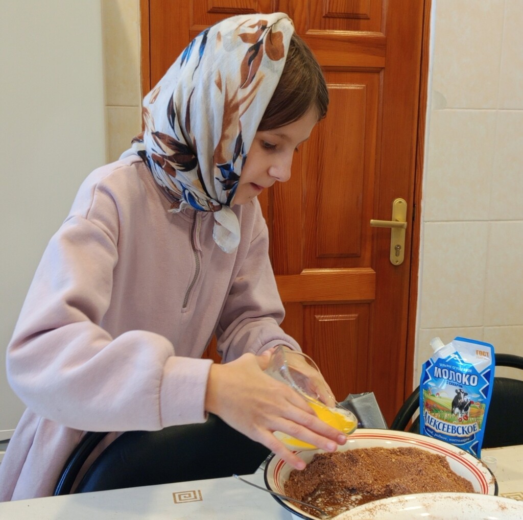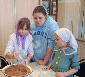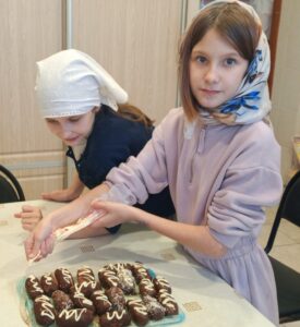 После окончания учебного дня воскресной школы, в кружке «Домоводство», состоялось очередное практическое занятие, на котором воспитанники 3–4 классов воскресной школы под руководством педагога Аллы Анатольевны Лагутиной изготовили пирожное «Картошка».