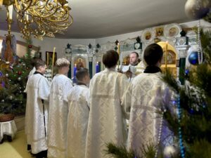 7 января 2026 года. Рождество Господа Бога и Спаса нашего Иисуса Христа. Всенощное бдение. Часы. Божественная литургия святителя Иоанна Златоуста. Праздничное славление. Поздравление молодежной, музыкальной, вокально-творческой группы «Путники» обращённое к отцу-настоятелю Прихода священнику Алексию Колесникову, сотрудникам, благотворителям, а также родителям и воспитанникам воскресной школы имени святителя Тихона, Патриарха Московского, и всея России Прихода Никольского храма в селе Бокино.