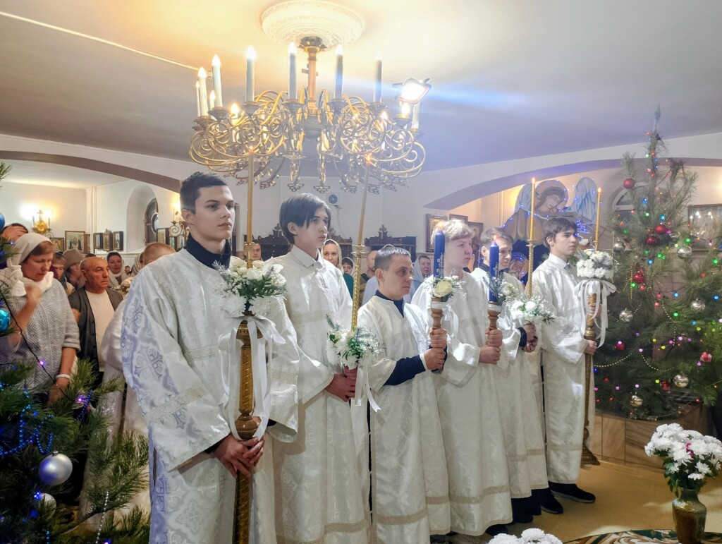 7 января 2026 года. Рождество Господа Бога и Спаса нашего Иисуса Христа. Всенощное бдение. Часы. Божественная литургия святителя Иоанна Златоуста. Праздничное славление. Поздравление молодежной, музыкальной, вокально-творческой группы «Путники» обращённое к отцу-настоятелю Прихода священнику Алексию Колесникову, сотрудникам, благотворителям, а также родителям и воспитанникам воскресной школы имени святителя Тихона, Патриарха Московского, и всея России Прихода Никольского храма в селе Бокино.