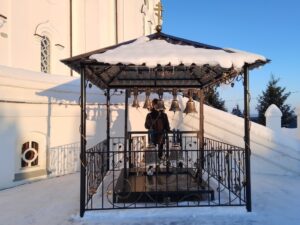 Гости познакомились с жизнью Прихода, его святынями и историей. Особое внимание было уделено малой звоннице, недавно освящённой при храме. Звонарь Прихода Егоров Кирилл Павлович встретил делегацию праздничным звоном.
