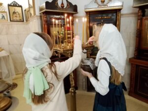 После окончания молебна паломники проследовали в воскресную школу, где для гостей была подготовлена тёплая и содержательная встреча. Директор, Овсянникова Ксения Владимировна, рассказала о жизни школы, образовательном процессе, духовно-нравственных и творческих проектах, в которых участвуют воспитанники и педагоги.