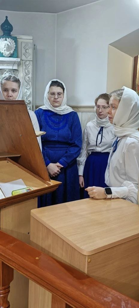 После окончания молебна паломники проследовали в воскресную школу, где для гостей была подготовлена тёплая и содержательная встреча. Директор, Овсянникова Ксения Владимировна, рассказала о жизни школы, образовательном процессе, духовно-нравственных и творческих проектах, в которых участвуют воспитанники и педагоги.